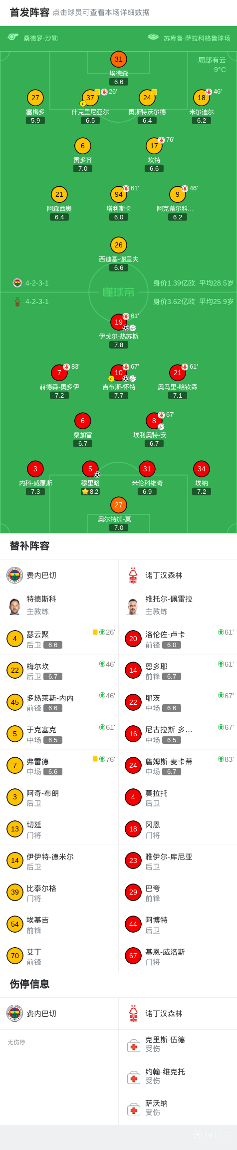 森林3-0费内巴切,吉布斯-怀特、热苏斯互相传射,穆里略破门