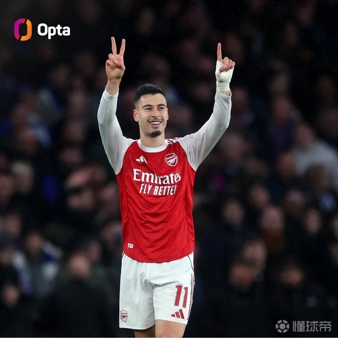 马丁内利本赛季杯赛进球已上双,成赖特后首位达成的枪手球员